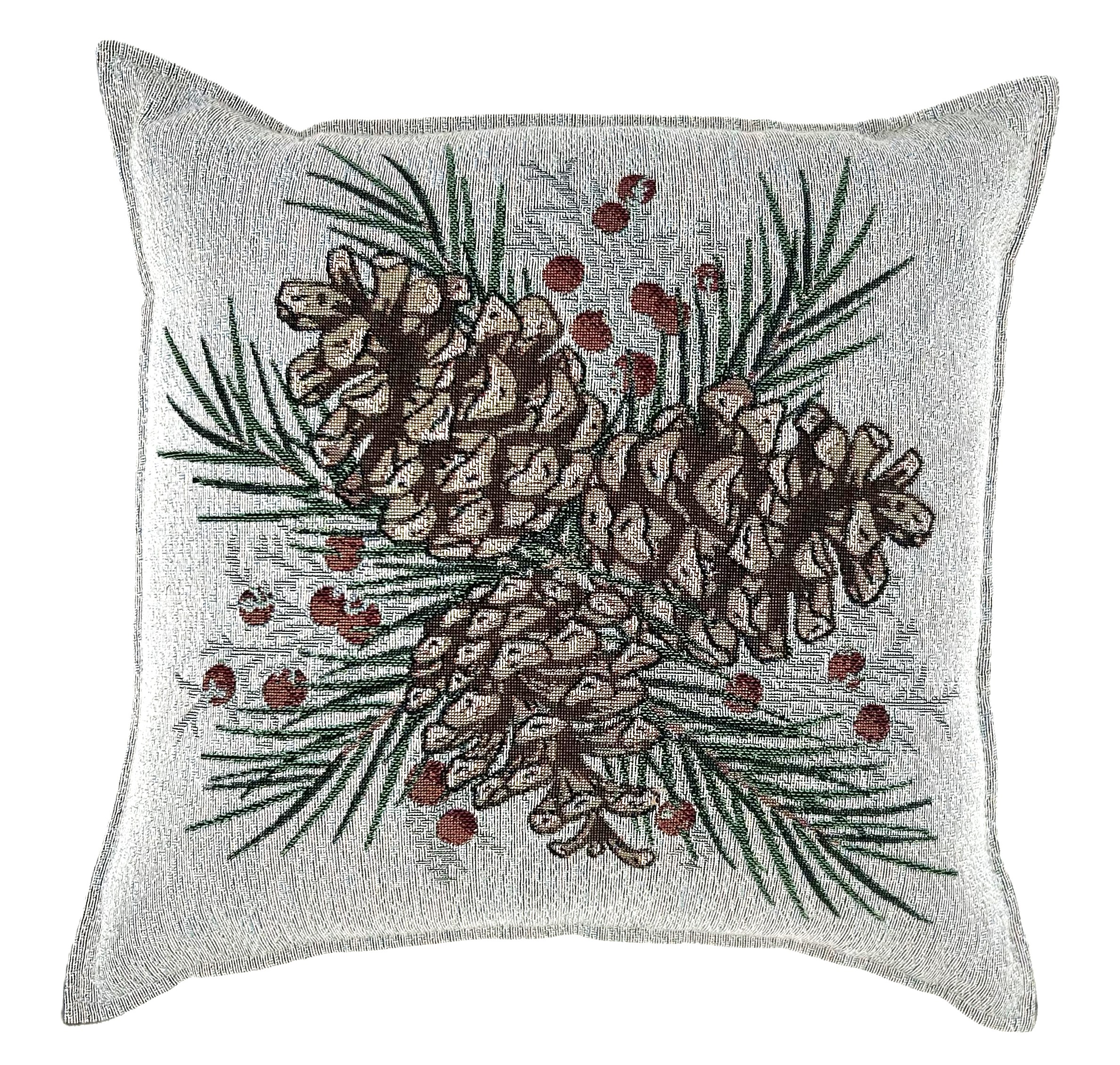 - Pine Cones and Red Berries Tapestry Design: Adorned with an artistic rendering of Pine Cones and Red Berries pattern framed on gray and white winter wash, the tapestry fabric adds a touch of nature-inspired elegance to your decor. The woodland pattern creates a visual focal point for any room.